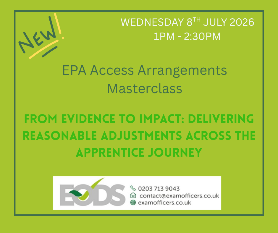 This 90 minute session will guide you through the practicalities of implementing reasonable adjustments for End-Point Assessments (EPAs), ensuring they are both practical and compliant.